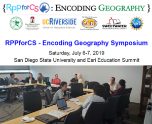 The “CSforAll” program at the NSF funded a proposed initiation of a Researcher-Practitioner Partnership (RPP) in the San Diego area. The goals of this project are manifold, but most importantly RPPs have good potential to generate better communication between K-12 geography teachers and college faculty, which could improve geography education and the pipeline to college geography, an objective recently outlined by AAG President David Kaplan. Under this grant, the first “Encoding Geography Symposium” was organized on July 6 at San Diego State University concurrently with the Esri Education Summit. This symposium brought together Geography teachers from the Sweetwater Union High School District and researchers from SDSU, UC Riverside, and Texas State University for one day to exchange the realities and challenges of teaching geography at all levels as well as assess opportunities for such a partnership across institutions of education. The outcome of the symposium were a common agenda for such a partnership, outlining the principles and objectives to build capacity for CT in geography education. The hope for this pilot RPP is to serve as a model for RPPs in other districts or states.